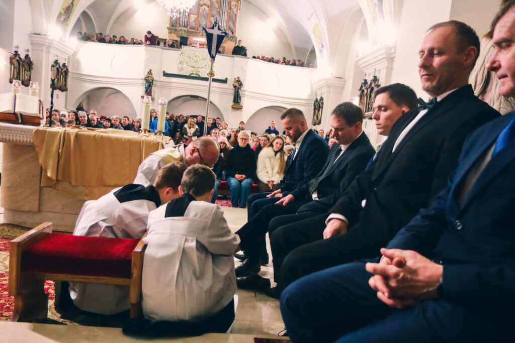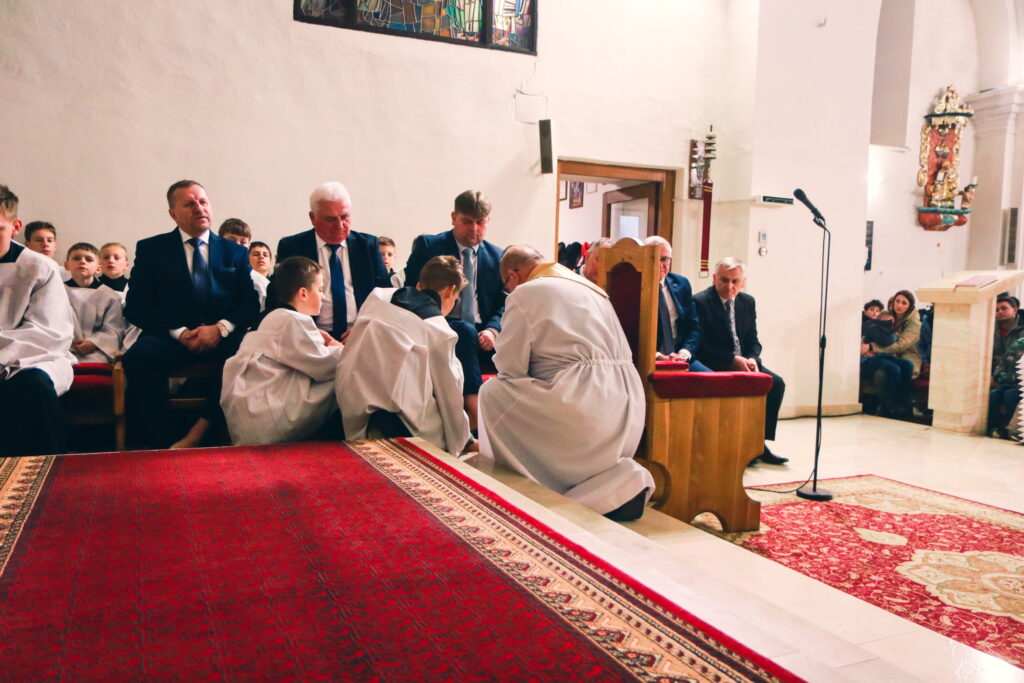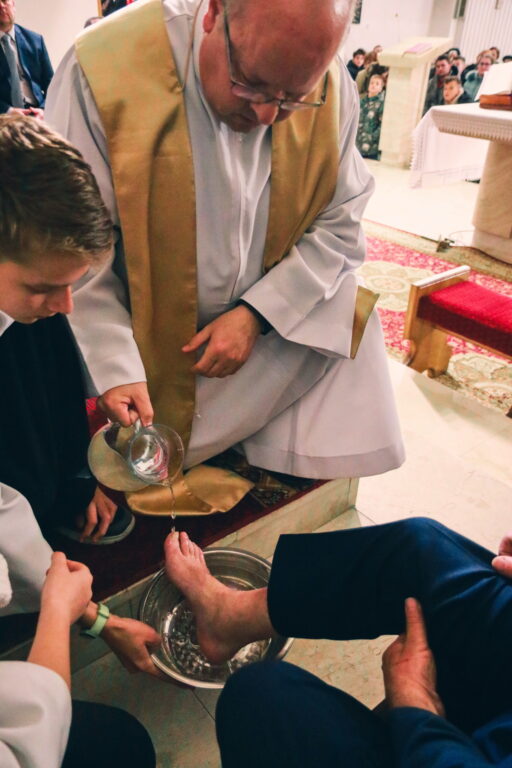 Vo Štvrtok svätého týždňa (Zelený štvrtok) pripomenul Krista, ktorý v tento deň ustanovil Oltárnu sviatosť a kňazstvo a ukázal sa nám ako Láska. Priblížilo to aj Ježišovo umývanie nôh učeníkom – dôkazom, že neprišiel dať sa obsluhovať, ale slúžiť. Počas svätej omše tak urobil aj náš pán farár vybraným mužom. Povzbudil nás slovami: „Dajme si sľub, že chceme Pána Ježiša nasledovať, aj keď sa nám často nechce ísť do kostola, konať skutky lásky a tým prežívať intenzívnejšie vzťah k Bohu a blížnemu.“ Štvrtok má však aj širší rozmer spoločenstva. Dopoludnia sa v katedrálach konali tzv. missa chrismatis, na ktorej sa kňazi stretli so svojím biskupom. Je to silný moment jednoty a vďaky za službu, ktorú v diecéze vykonávajú.