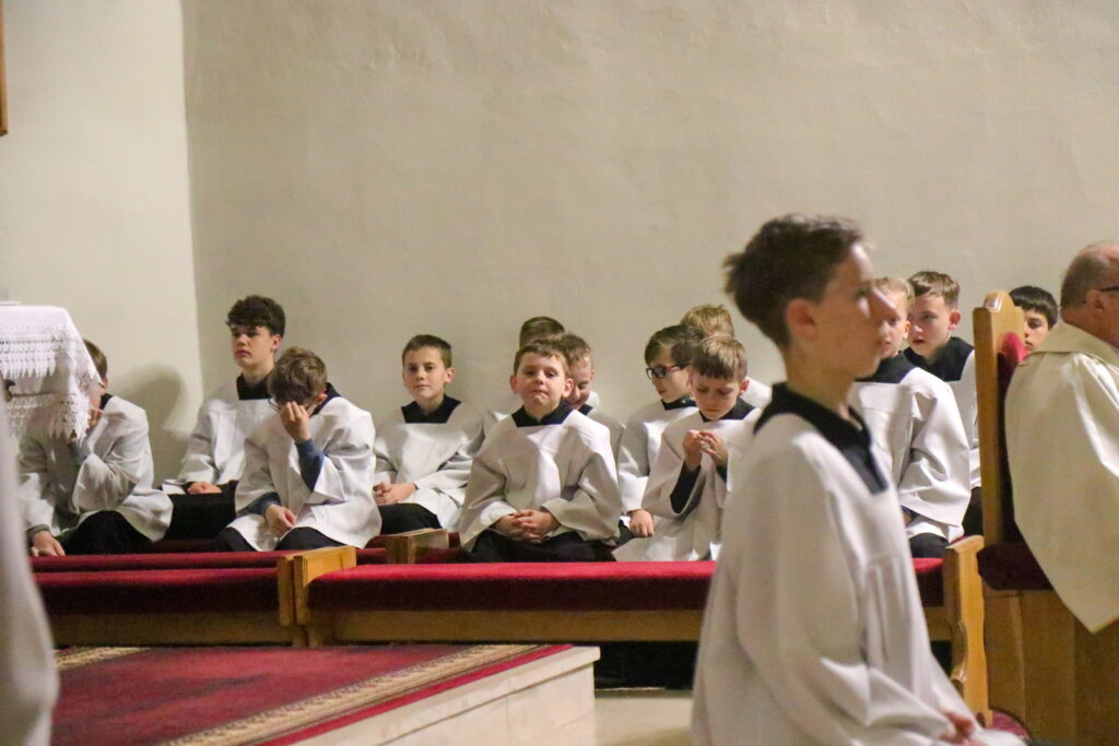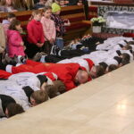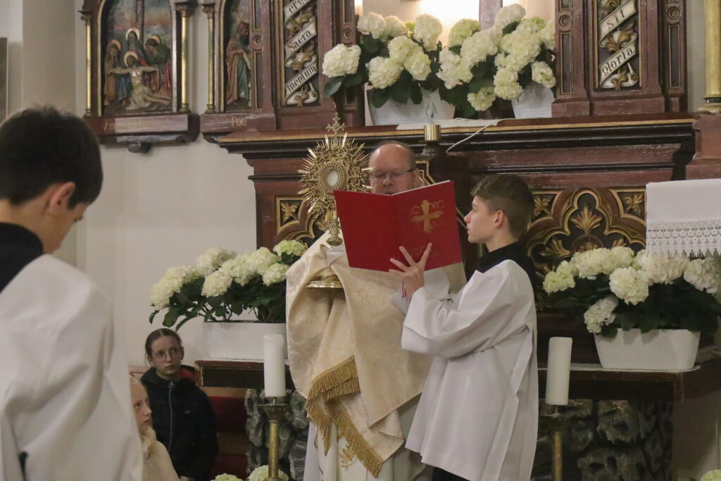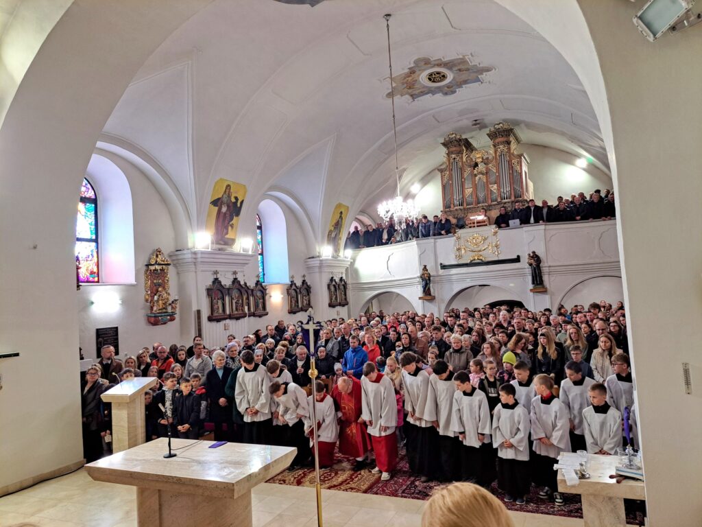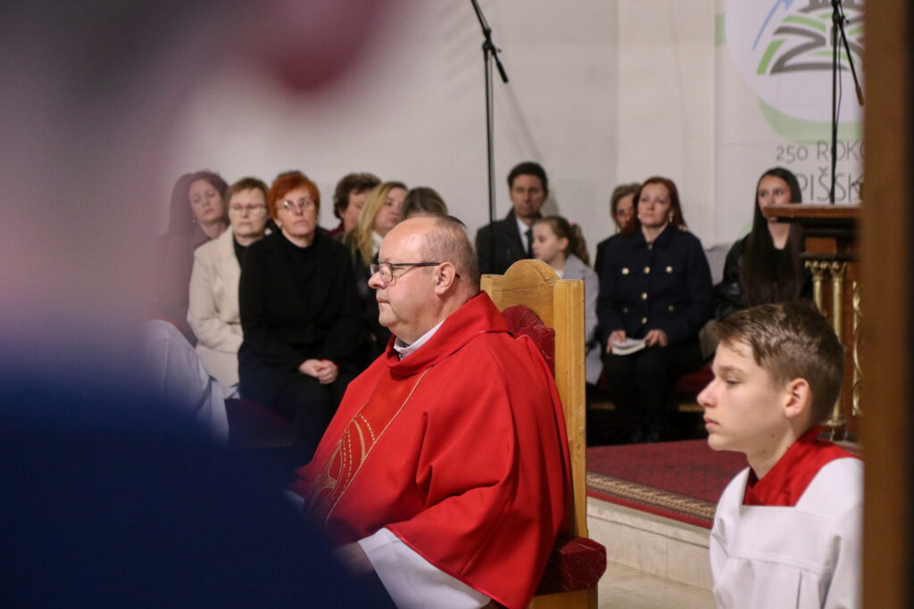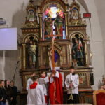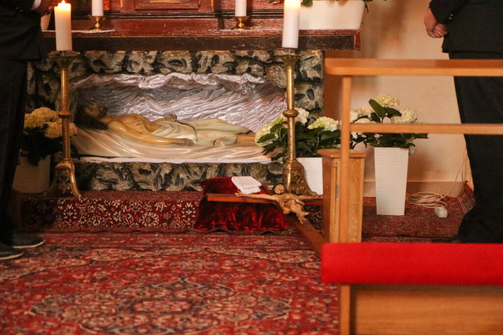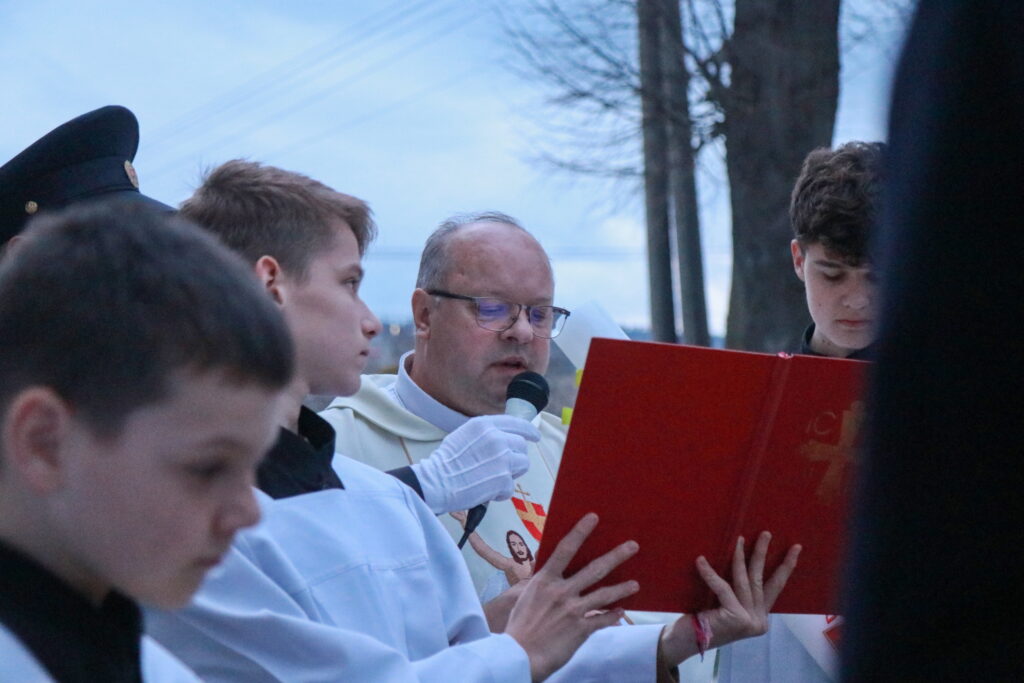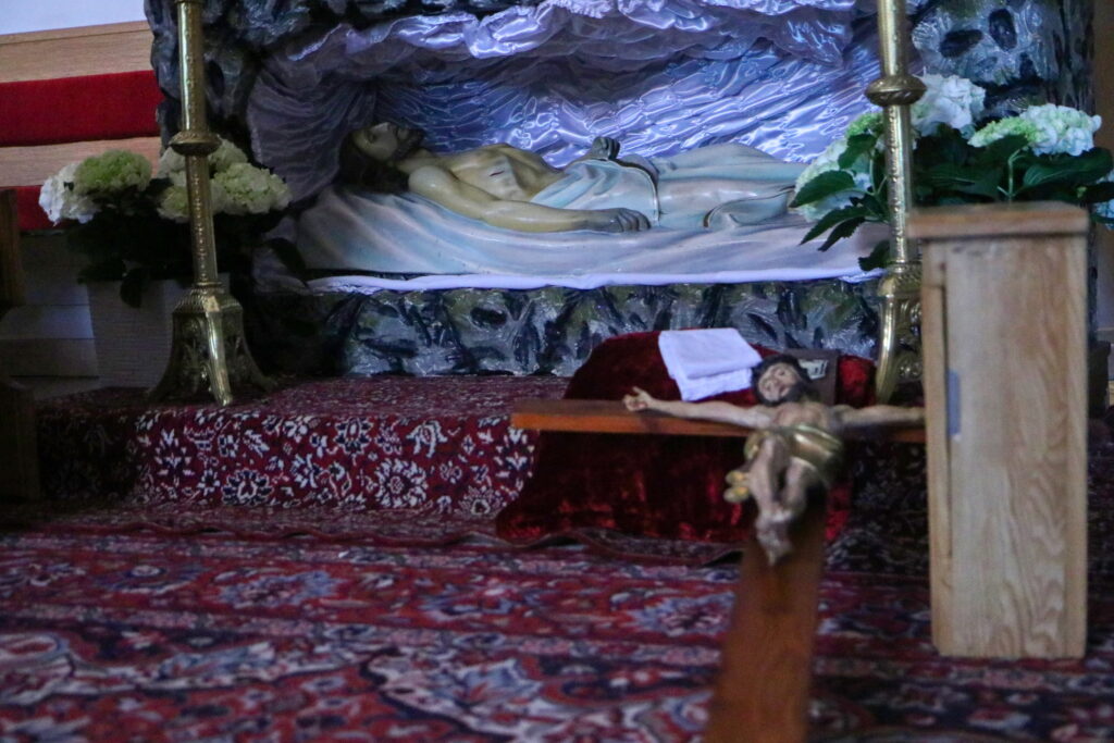 Na Piatok utrpenia Pána (Veľký piatok) sa náš duchovný otec zamyslel: „Pán Ježiš uzdravoval, oživoval ľudí, vracal zrak, pohyblivosť, nasýtil ich….a za čo Ho obvinili a odsúdili? Aj Pilát ostal prekvapený, že si Židia vybrali prepustiť Barabáša.“ Naznačil, že aj my si často vyberáme „Barabáša“ – čokoľvek, čo sa nám núka ako náhrada za Ježiša. Máme si voliť toho, ktorý za nás dal svoj život, pretože aj my sme Ho svojimi hriechmi a nedokonalosťami pribili na kríž. Utrpenie Krista nám v piatkových obradoch priblížili spievané pašie. Silný moment bol aj úvod obradov, keď si pán farár a miništranti ľahli na zem ako vyjadrenie vlastnej biedy a prachu, z ktorého sme povstali, ale zároveň bezhraničnej dôvery v Pána.  To že sa v tento deň nekonala svätá omša, iba obrady, nás upriamuje na ten najväčší skutok Božej lásky k nám. Otec už nemohol urobiť viac než obetovať svojho Syna, aby sme my mohli žiť v slobode.