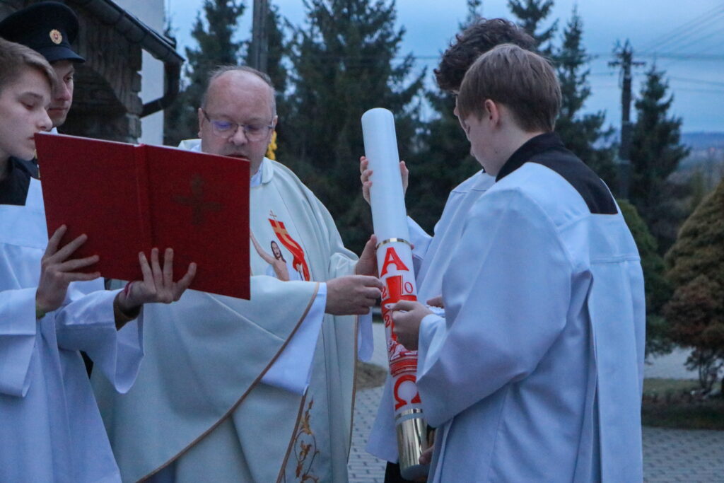Na Svätú (Bielu) sobotu sme mohli  zotrvať pri Pánovom hrobe a rozjímať o jeho utrpení a smrti. Čas čakania, ticha a bdenia – od Zeleného štvrtku, keď utíchli zvony aj organ – aby sme sa dokázali plne sústrediť na Kristov kríž, nástroj našej spásy a jeho obetu. A potom večer počas Vigílie a ráno v nedeľu Pánovho zmŕtvychvstania, aby sme po štyridsiatich dňoch pôstu mohli opäť slávnostne zaspievať „aleluja“. Ježiš síce zomrel na kríži, ale ako pripomína svätý Pavol, následne vstal z mŕtvych. A to je naša radosť. Pán farár veriacich povzbudil: „Nech sú naše srdcia preniknuté radosťou! Kristus vstal z mŕtvych a ide pred nami. Nasledujme ho v nádeji, že nás vedie do svojho kráľovstva!“